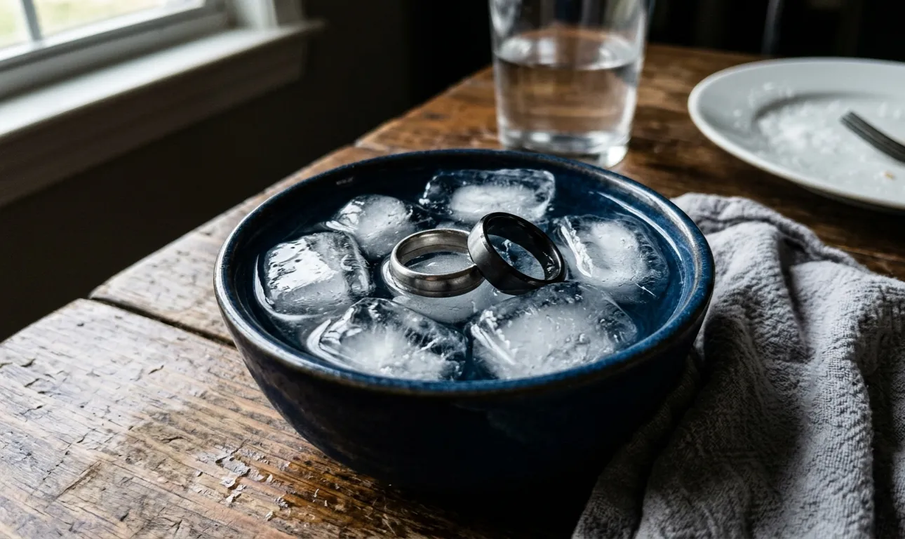 Istället för att få panik eller försöka dra bort ringen med tvål använder många temperaturmetoden. Den kräver de vanligaste föremålen från köket.