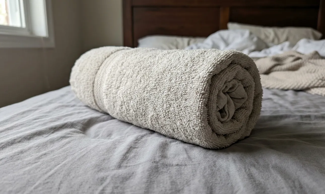 Kärnan i detta hushållshack är mild dragkraft och stressavlastning under påverkan av din egen vikt. Ingen speciell utrustning krävs för genomförandet – bara en vanlig badhandduk och lite ledig tid. Jag har märkt att den här metoden är ett utmärkt sätt att koppla av efter en hård dag.
