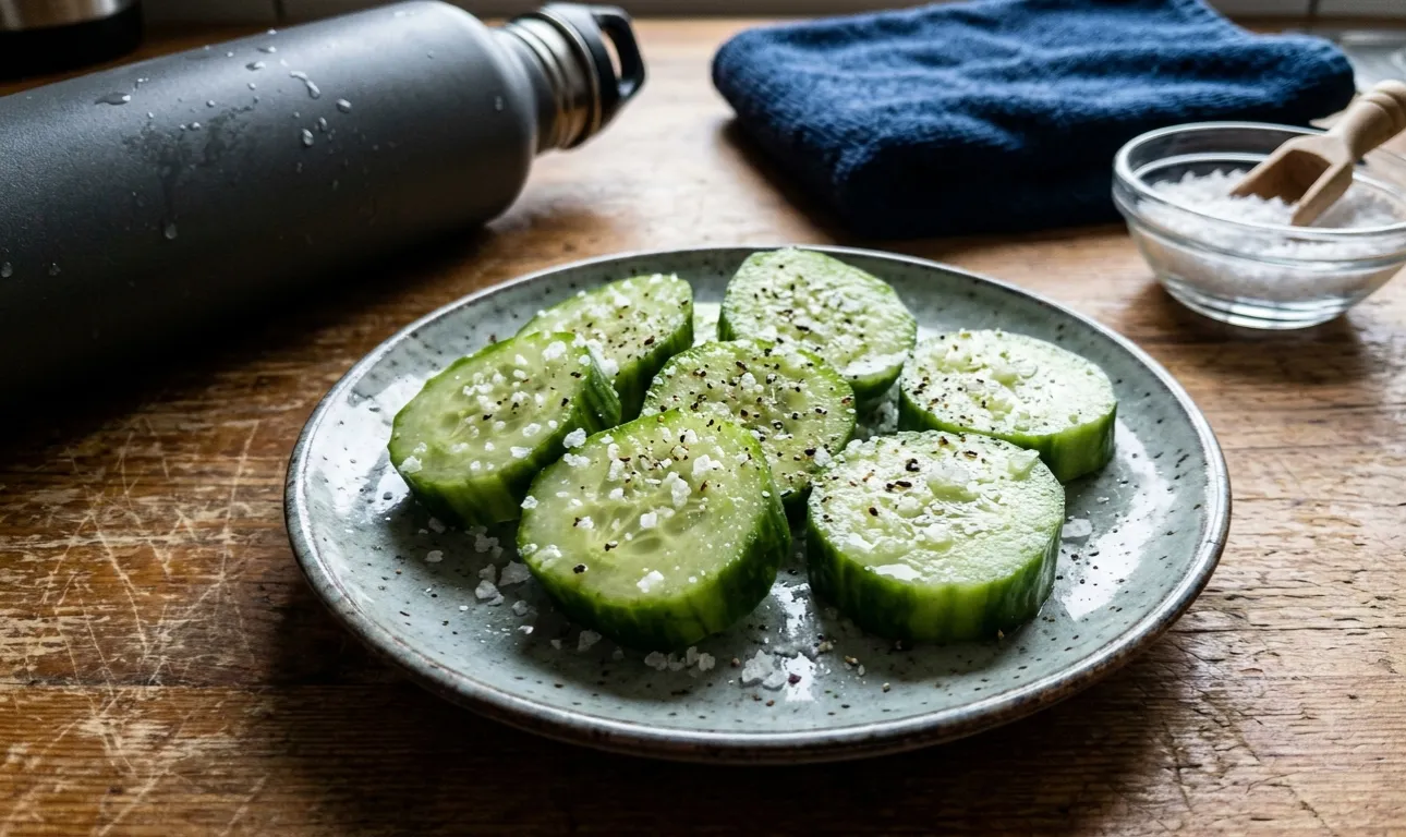 Många människor använder följande hushållslivsstilshackar: – Ett glas medicinskt bordsvatten mineralvatten med en utpräglad bräckt smak. – Normalt dricksvatten med en nypa grovt vatten upplöst Havssalt och en citronskiva. – Ett par klunkar av den vanliga hemmagjorda saltlaken från gurkor eller surkål. – En liten bit lättsaltad fisk, om suget redan finns i hemmaköket.